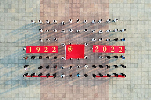 学生会执行主席毛国阳做国旗下演讲,从青年的信仰、基本道德规范、争做“五有”人才三个方面讲述青年的责任,呼吁青年将个人的青春梦融入中华民族伟大复兴的中国梦中。青年学生代表刘安贝带领全体青年,面对团旗重温入团誓词,整齐划一的口号展现青年饱满的精神风貌。话剧《百年征程看今朝》演绎出一首青春的赞歌,不同时代的爱国青年,穿越时空,共同献礼建团百年,以爱国主义精神团结青年,以远大理想鼓舞青年。退伍官兵董传啸围绕“以吾辈之青春,护盛世之中华”发言,怀揣着对党的敬意,以自身经历呼吁当代青年,为人民事业发展与祖国建设贡献出自己的一份力量。