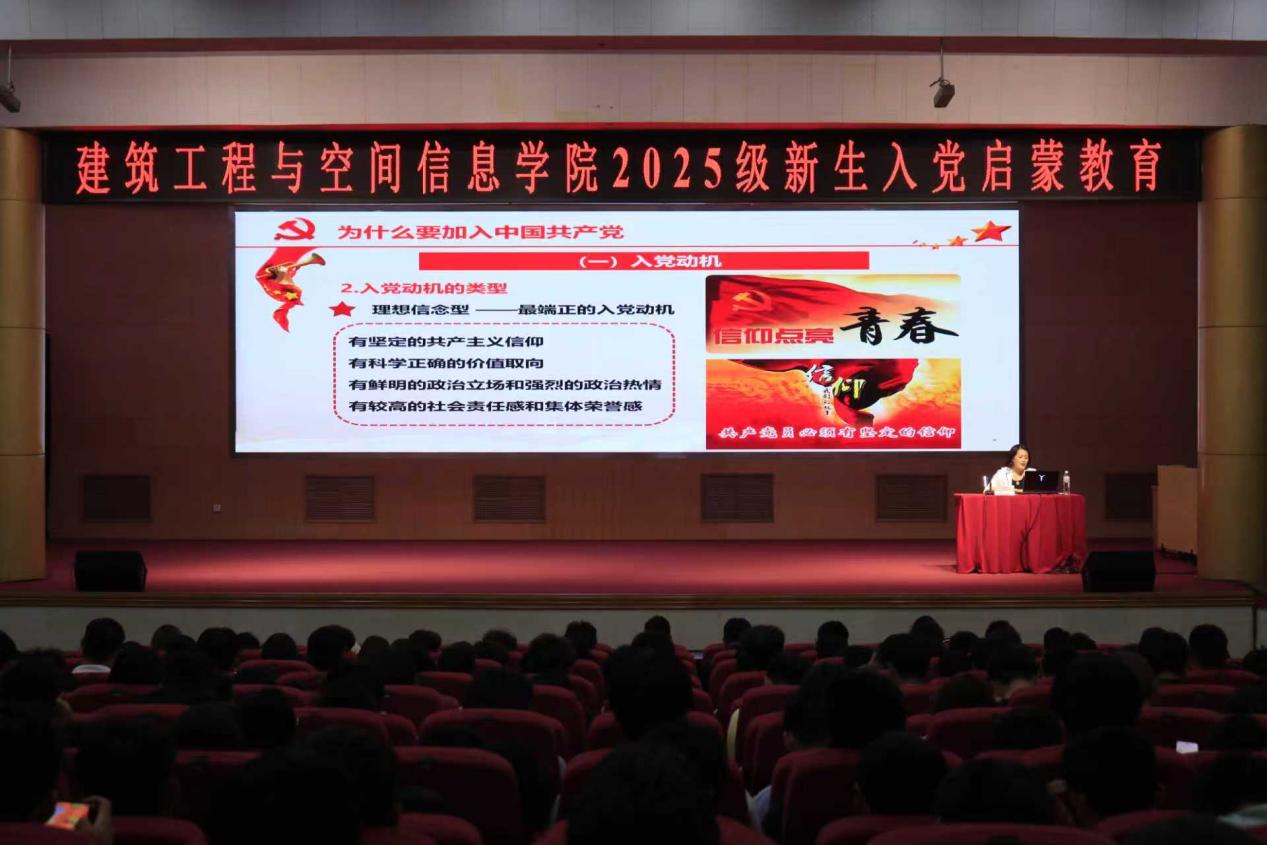 薪火照前路,青春向党建。9月28日下午,建筑工程与空间信息学院2025级新生入党启蒙教育在3号教学楼报告厅举行。会议由学院党委书记黄文娟主讲,2025级全体学生参加。