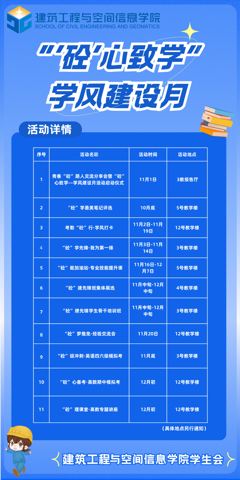 学院将以创建“青春‘砼’路人”为契机,开展学风研讨、榜样分享、技能加油站等系列活动,持续深化学风建设,涵养育人生态,推动学院建设走深走实。为持续提成人才培养质量,实现学院高质量发展注入新动力。