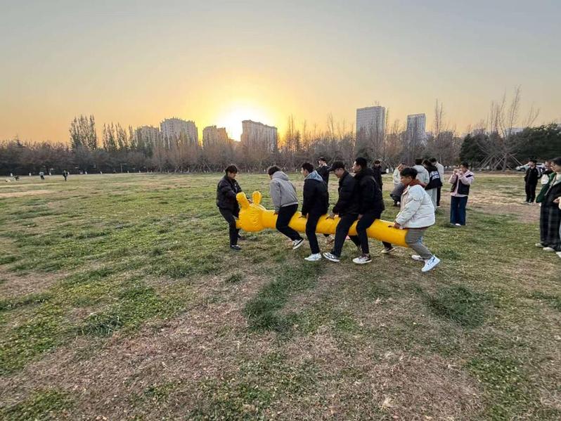 活动伊始,主持人依次介绍游戏规则和注意事项,各项团队游戏也在欢声笑语中陆续展开。学员们迅速融入各自小组,在“桌面乒乓”、“盲手筑塔”、“合力立水”、“环问飞球”、“草地龙舟”等项目中全情投入。现场气氛热烈,每一个环节都考验着团队的默契与配合,大家互相提醒、彼此鼓励,即使偶有失误也迅速调整、再接再厉。整场活动不仅让学员们在协作中增进了理解,也在轻松愉快的互动中凝聚了情谊,展现出青春的活力与集体的温暖。