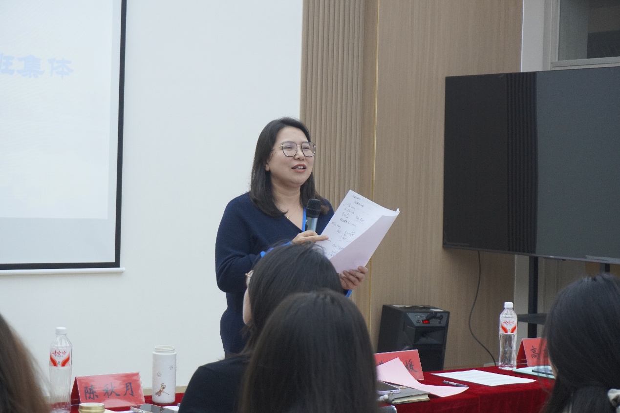 最后,曹晓媛作总结讲话。她首先对各班级在答辩会筹备过程中展现出的高度责任感与扎实工作作风予以充分肯定。随后,她结合本次答辩整体情况,指出当前班级建设存在两项共性短板:一是学风建设的深度和实效性有待强化,学习发展是班级建设的根本基石,必须锚定这一核心任务常抓不懈;二是志愿服务工作的体系化建设存在欠缺,需进一步整合资源、丰富载体,充分发挥志愿服务在凝聚班级力量、厚植奉献精神中的重要作用。最后,她引用“一花独放不是春,百花齐放春满园”的名句强调,唯有统筹推进班级建设各方面工作、实现全面协调发展,才能打造出凝聚力强、特色鲜明的优秀班集体,为学院人才培养质量提升和优良学风培育注入源源不断的强劲动力。