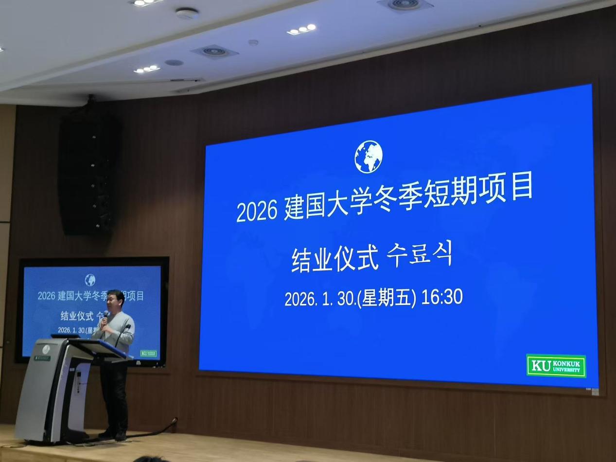 1月31日,结业仪式举行。韩国建国大学国际处负责人卓一虎作讲话,并为全体学生颁发结业证书。